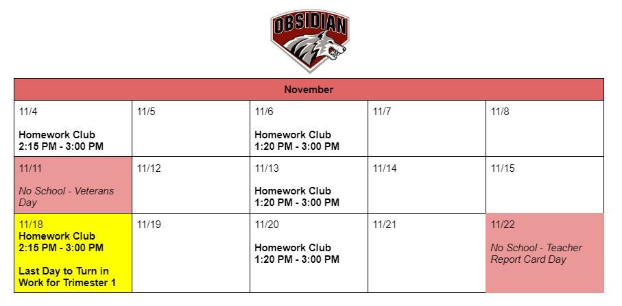 We're excited to announce that Homework Club is back for Trimester 1! Here is a link to the schedule, with screenshots below.